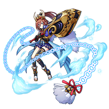 -Target: yourself. Applies blessing (recovers 50 Cost, increases max HP by 100%, nullifies status ailments and Unison Gauge reduction effects, reduces cooldown times by 50%, and recovers 20% of max HP every 5 seconds) for 90 seconds.